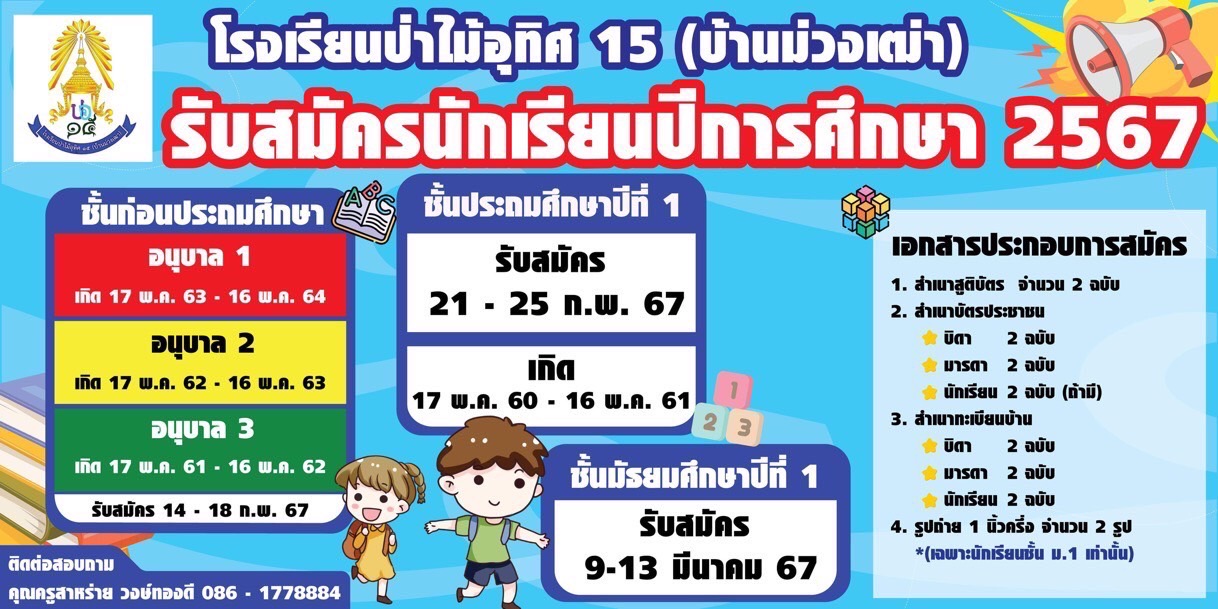 ยินดีต้อนรับเข้าสู่เว็บไซต์ โรงเรียนป่าไม้อุทิศ 15 (บ้านม่วงเฒ่า)ค่ะ...